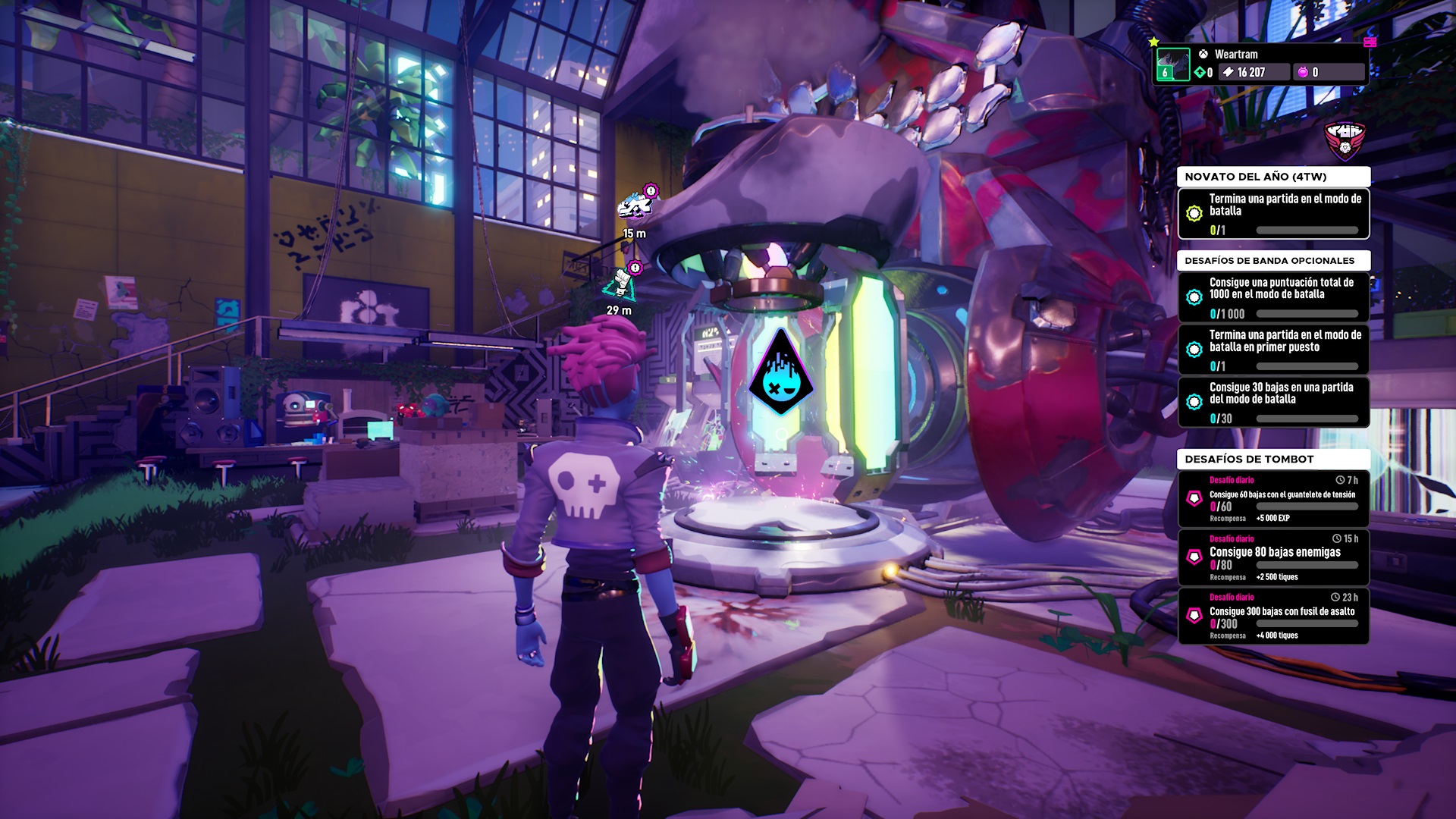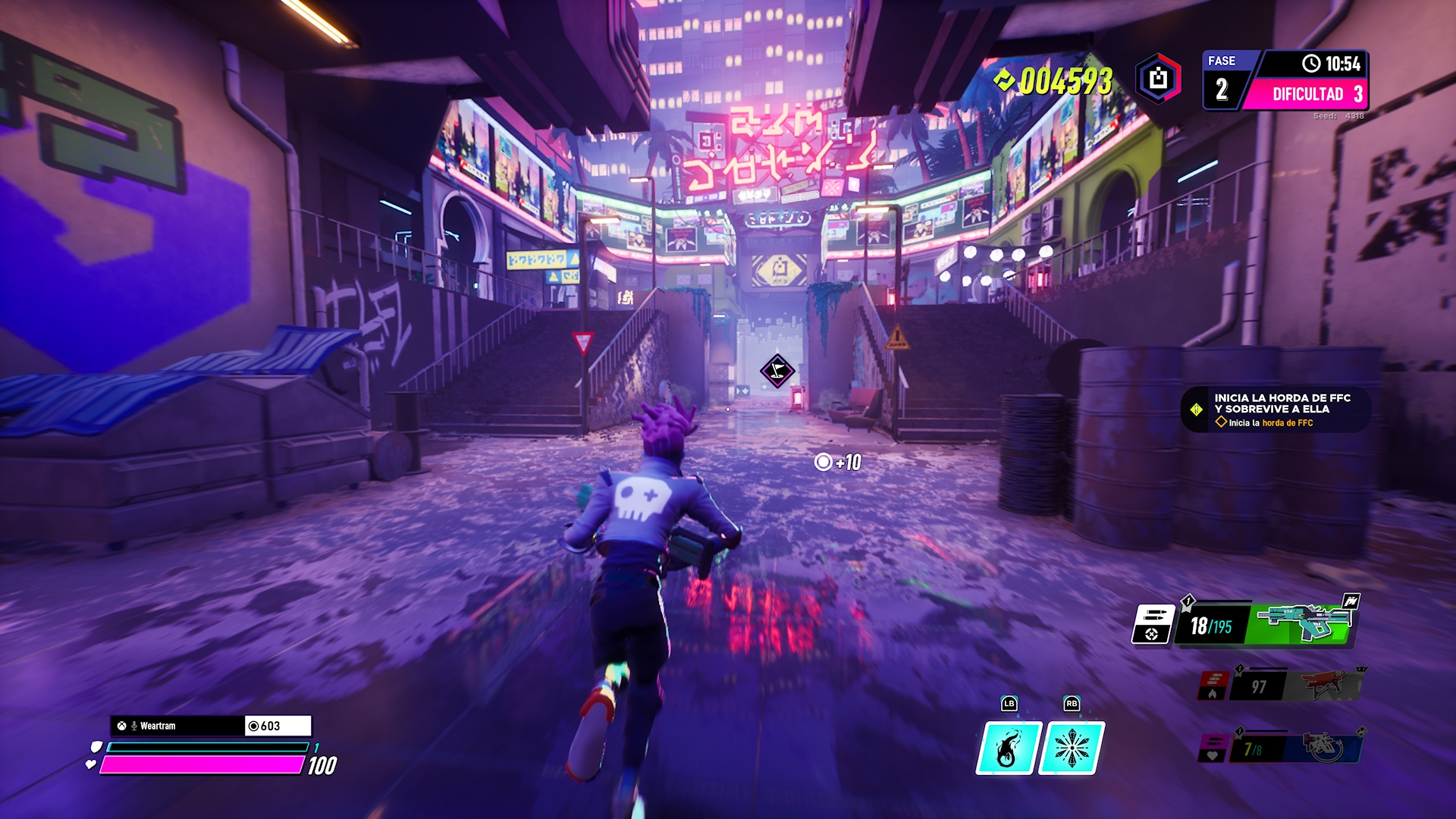 Arcadegeddon está localizado al español, pero solo diálogos e interfaz, el doblaje por defecto será el inglés. No obstante, cuenta con varios errores gramaticales y palabras o expresiones completas sin traducir; pero nada que no se solucione en futuras actualizaciones. En el lado apuesto y sin solución a priori, su banda sonora. Han intentado componer melodías “futuristas” con un toque cyberpunk y electrónica que no le sienta nada bien. Os prometo que antes de pasar la primera hora de juego ya tenía la música bajo cero y con Spotify de fondo para que me dejara de taladrar la cabeza y saturar.