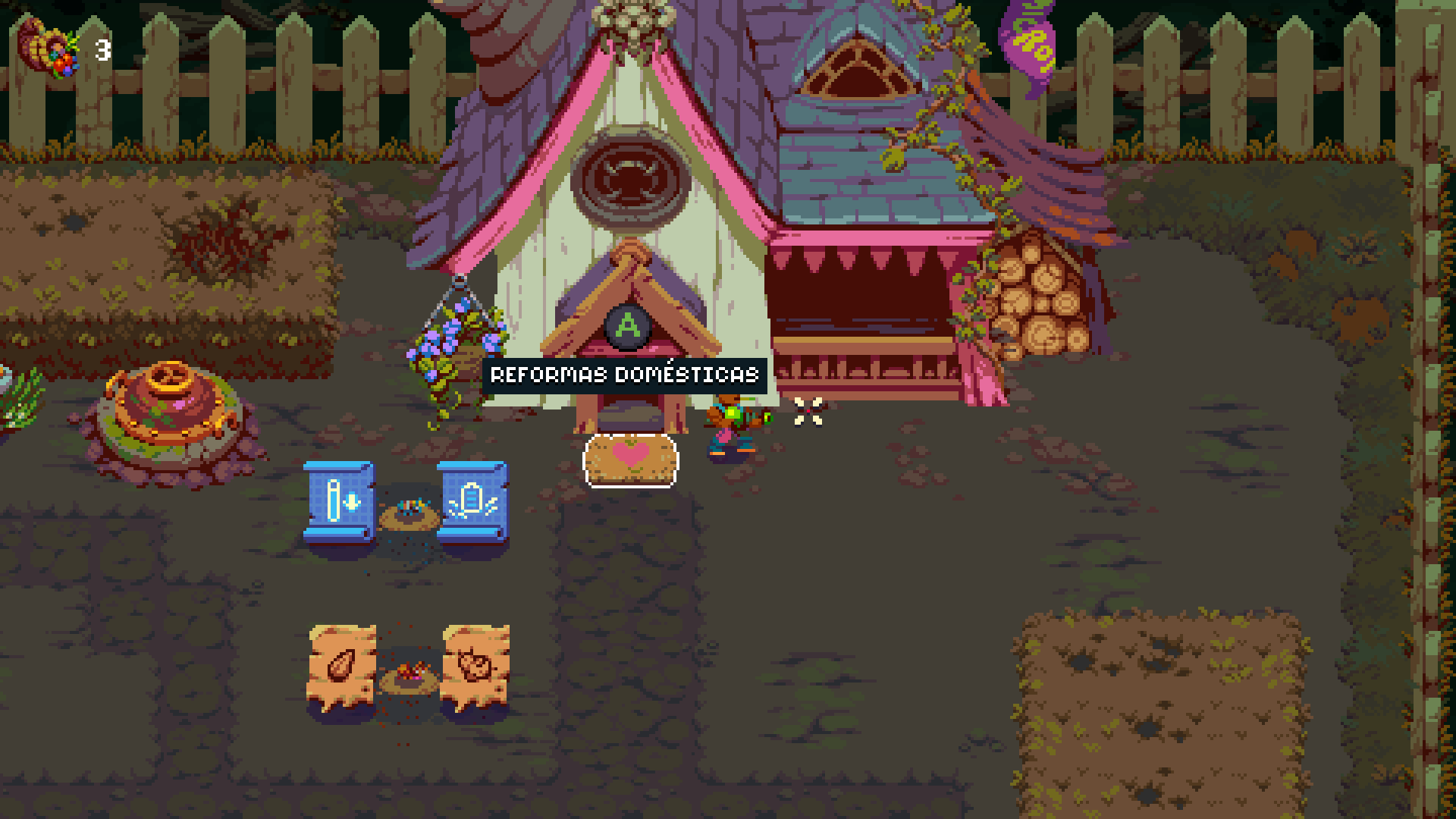 Obviamente también encontraremos semillas para cuando volvamos a nuestra granja antes del anochecer para poder plantarlas. Hay una gran cantidad de tipos de semillas, y cada una requiere unos cuidados distintos. Poco a poco iremos conociendo todos los tipos y como conseguir mutaciones entre ellas y mejorarlas, utilizando el fertilizante que conseguiremos al eliminar enemigos. Cuanto mas fertilicemos los cultivos mas beneficio obtendremos en forma de anacardos para la vuelta al pueblo.