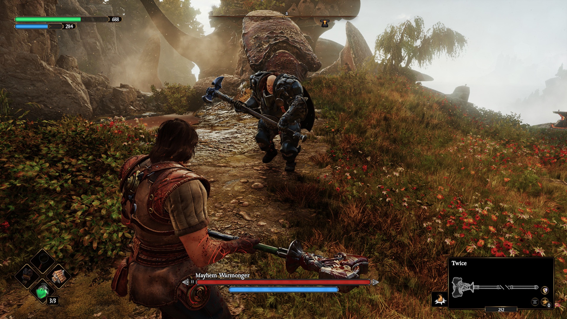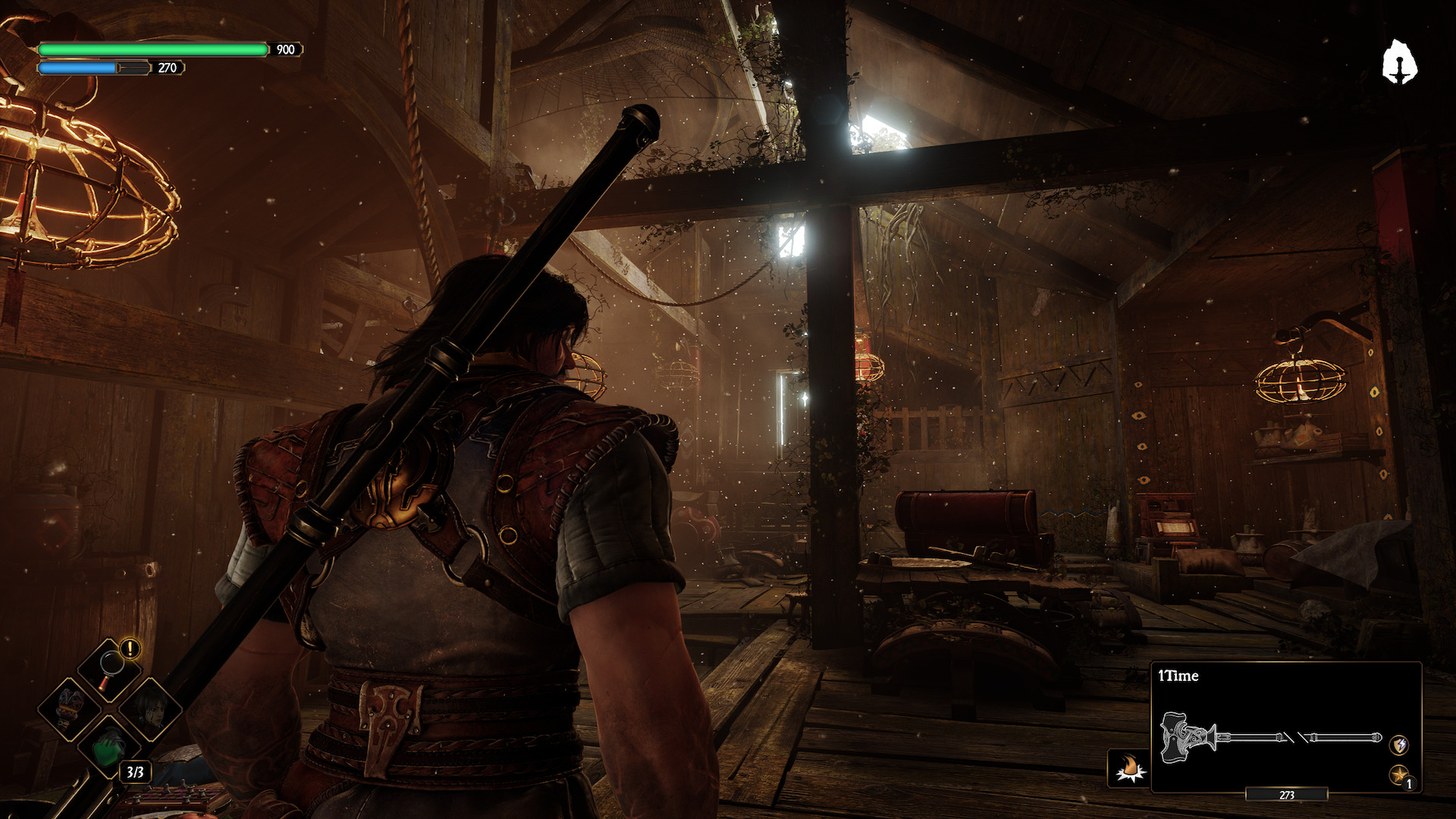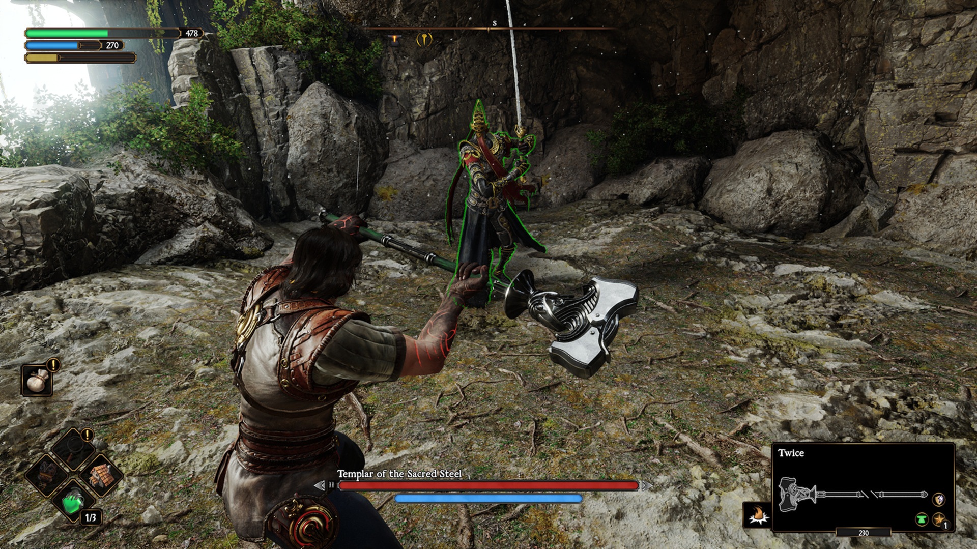 Algo que no debes olvidar, es un juego estilo soulslike, por lo que puedes bloquear y esquivar, y cada movimiento atacando o de desplazamiento, costará parte de tu barra de estamina, debes esta pendiente de hacer cada ejecución de manera acertada.