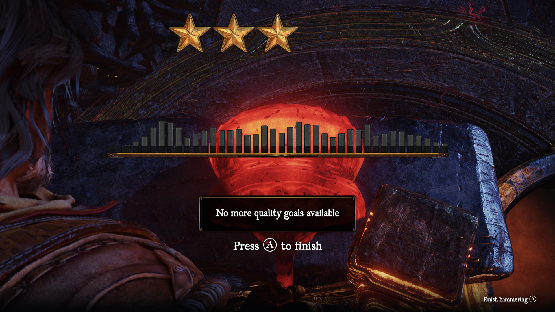 Ten en cuenta, que para finalizar la forja del arma, debemos realizar un tipo de minijuego, que nos otorgará estrellas, las mismas que sirven para tener la posibilidad de repararlas, con un total de 5 estrellas. Debido a que las armas se desgastan y se dañan, por lo que debes tener eso en cuenta al momento de hacerlas.