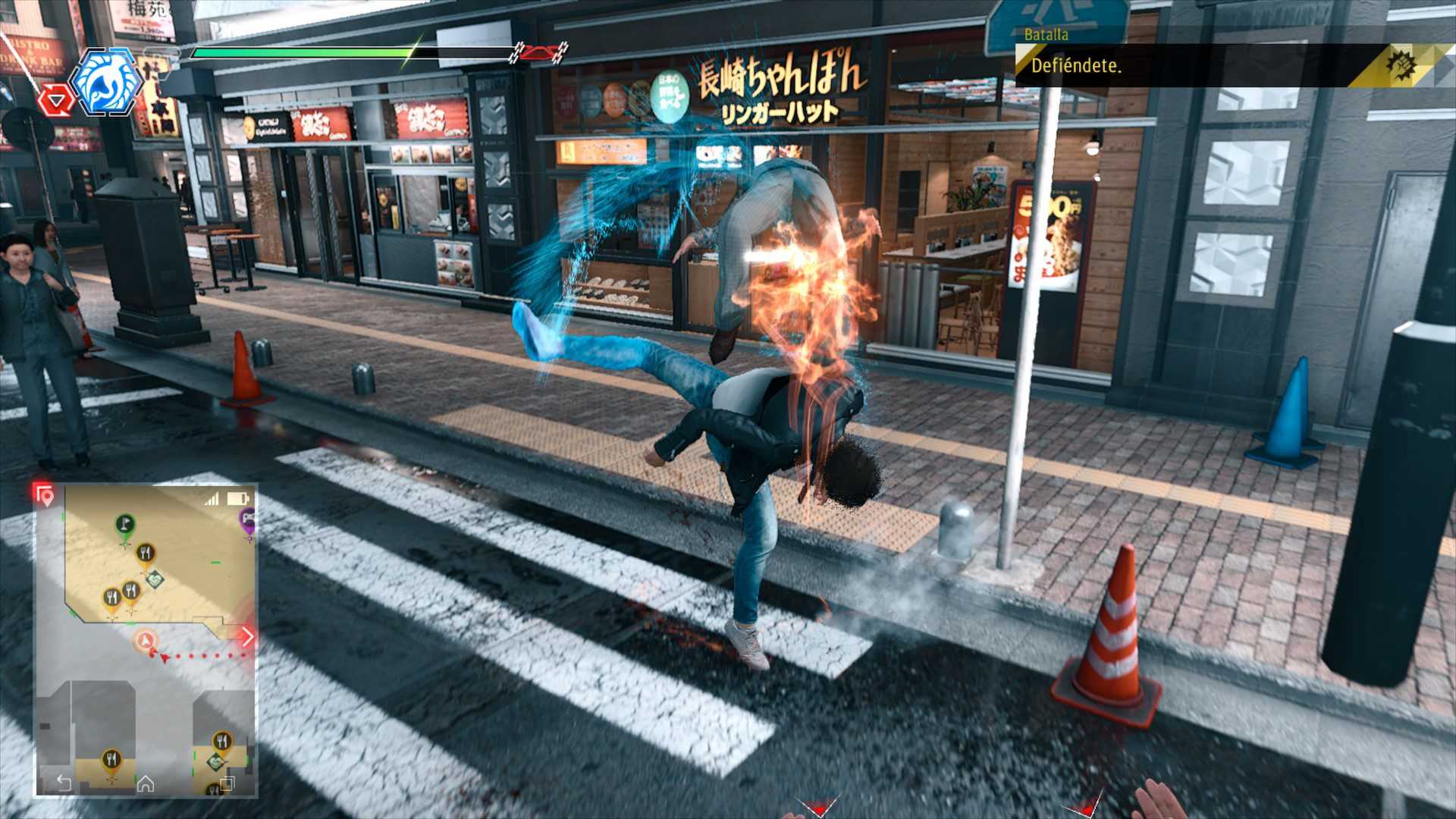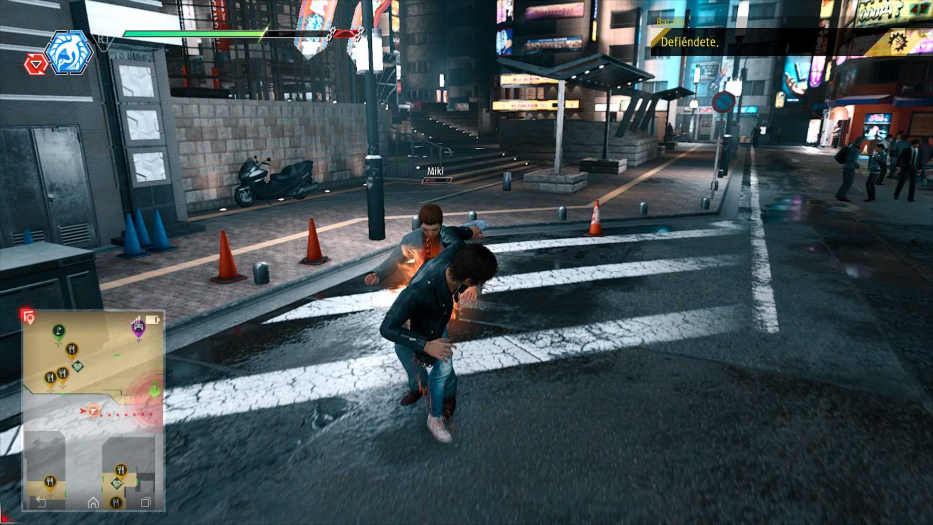 Me tenéis que perdonar las constantes comparaciones con la saga Yakuza, pero lo cierto es que son irremediables. Al igual que dicha saga, nos iremos encontrando pequeños grupos de matones u yakuzas por la ciudad de Kamurocho, os recomiendo encarecidamente enfrentaros a ellos siempre que podáis; de esta forma acumularéis una mayor cantidad de puntos para mejoras las habilidades de nuestro protagonista Tak. Por último, destacar que desde el menú principal podremos disfrutar de una pequeña selección de títulos de lucha, los cuales necesitaremos un compañero o ser querido para poder disfrutar de ellos.
