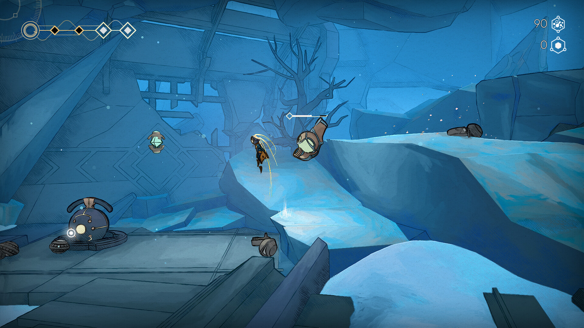 Al principio el juego no cuenta con un mapa como tal, lo cual puede llegar a ser un tanto desesperante, peor luego de reparar la estructura inicial de la columna el mapa se vuelve accesible desde el menú secundario; haciendo que las cosas sean más sencillas, aunque esto es decir poco en un juego que ostenta una dificultad muy elevada, aunque nunca injusta. Esto no se debe solo a la poca energía de la protagonista o a la complejidad de los enemigos; principalmente de los jefes, sino a que los puntos de guardado son muy escasos y a menudo quedan bastante lejos de los enemigos más grandes lo que hace que llegar hasta ellos sea un ejercicio de extremo cuidado y mucha paciencia, aunque nunca se vuelve ni tedioso ni desagradable.
