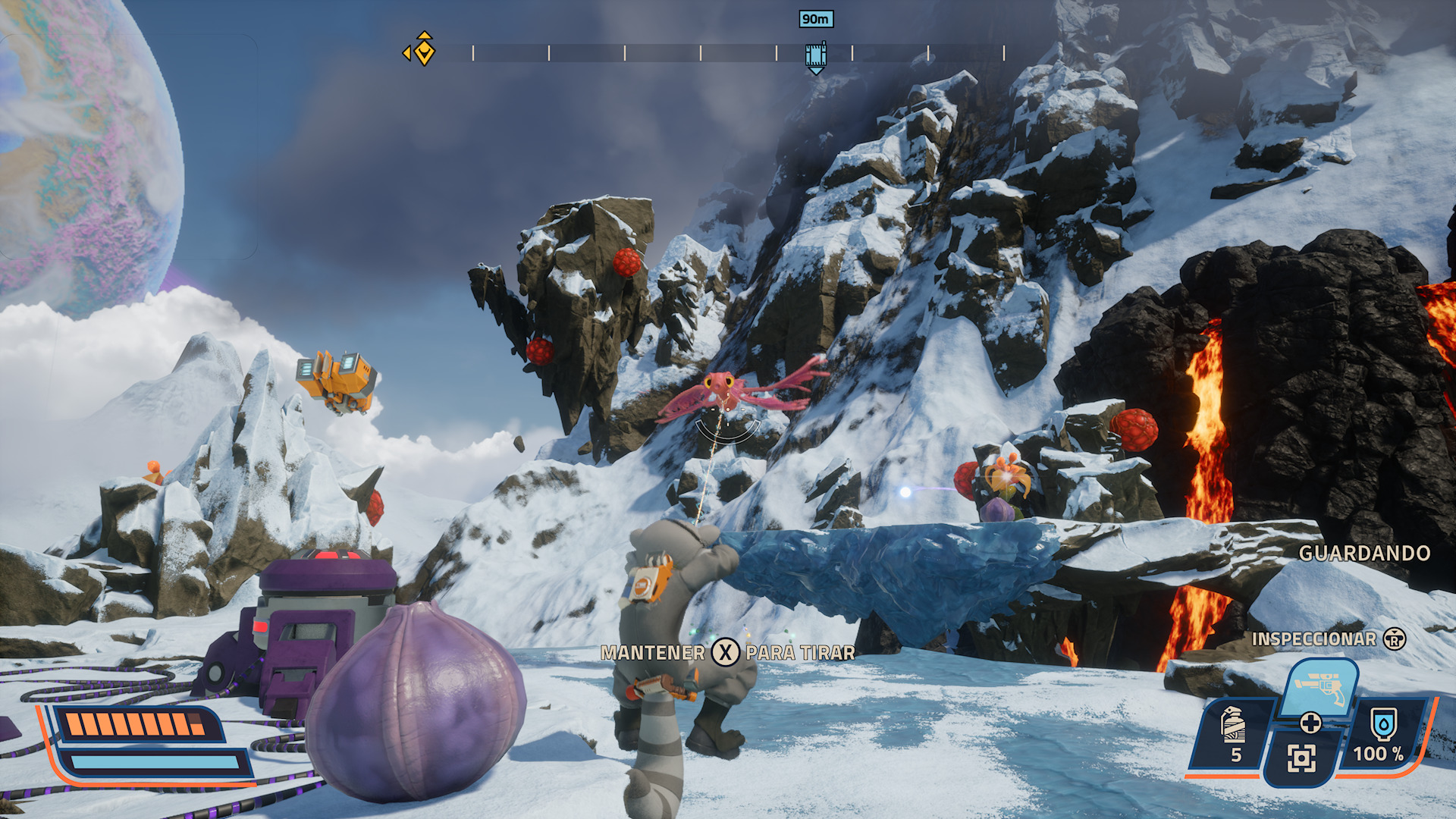 Desde el principio y sin perder tiempo, puedes jugar en solitario o con un segundo jugador, ya sea de forma local o en línea. La diversión está garantizada en ambos modos. Como indica el nombre del juego, estaremos en un planeta salvaje y aparentemente desolado. Pero no estaremos solos: la fauna local hará acto de presencia, sin olvidar la vegetación y los hermosos paisajes.