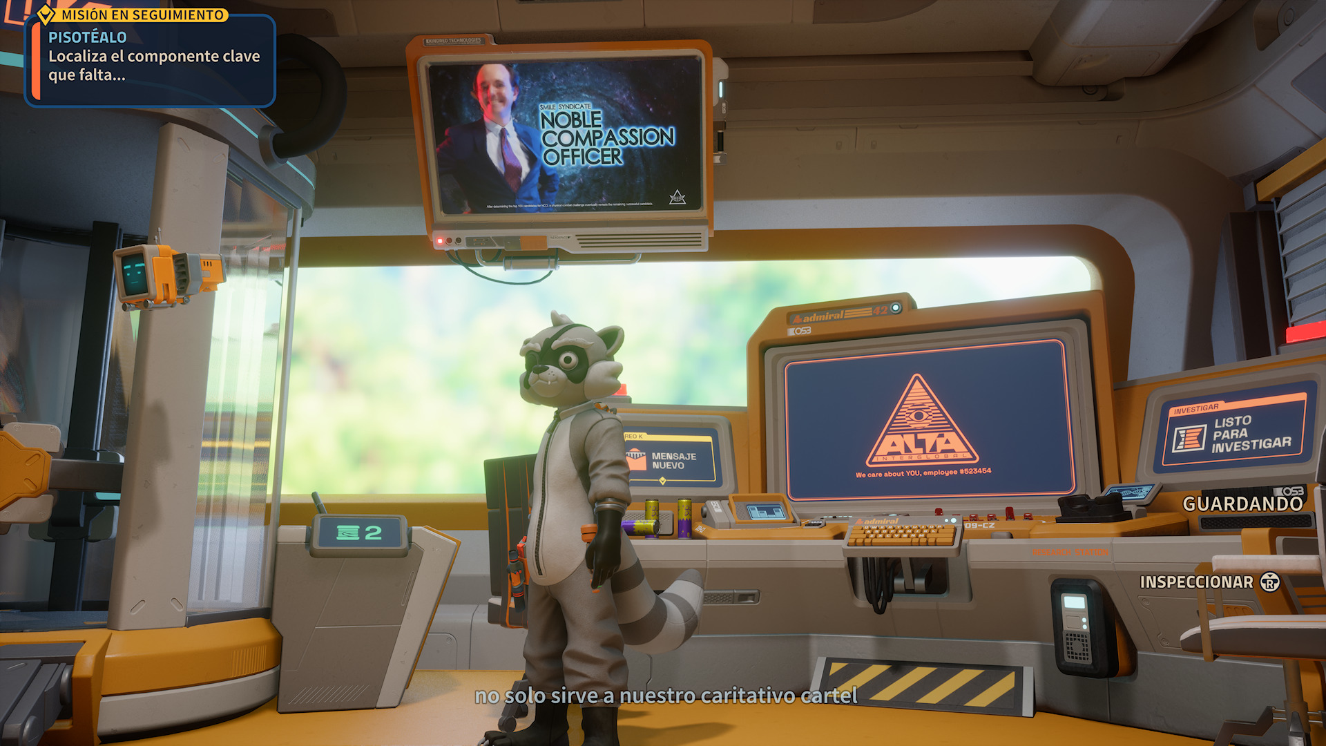 Me estoy adelantando, lo sé, pero detrás de todo lo que ocurre en el juego hay una corporación que nos envía constantemente vídeos y mensajes protagonizados por personas reales en situaciones cómicas y absurdas. El trabajo de doblaje en inglés es excelente y la creatividad brilla con luz propia.