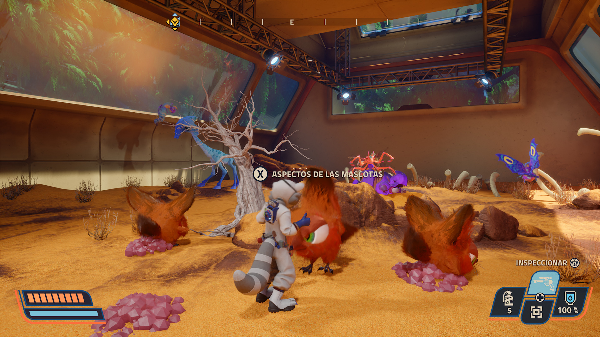 Además, nuestro hábitat actúa como refugio personalizable mediante objetos que podemos comprar con créditos, lo que nos permite crear un entorno encantador e interactivo. También podemos personalizar al protagonista con distintos trajes, incluyendo uno inspirado en Dave the Diver, que resulta especialmente divertido y encaja muy bien con el estilo del juego.