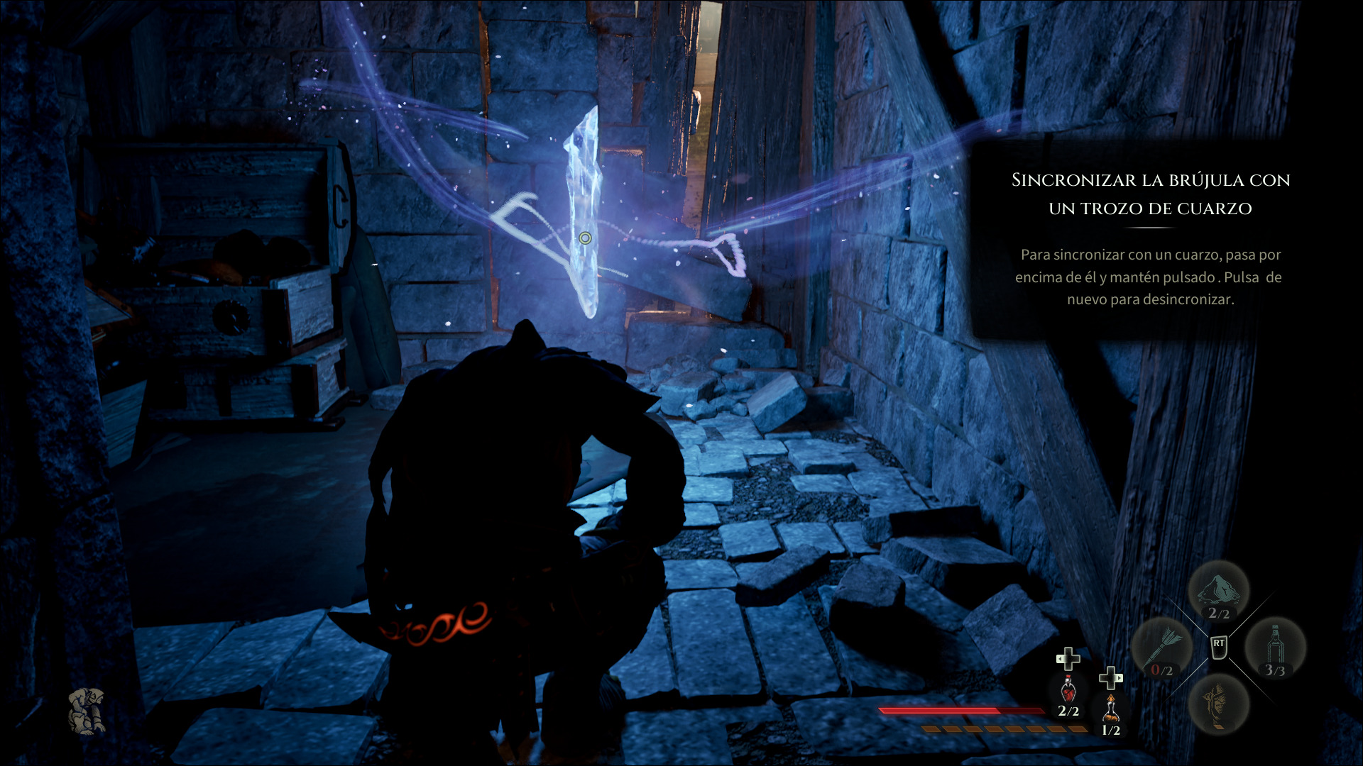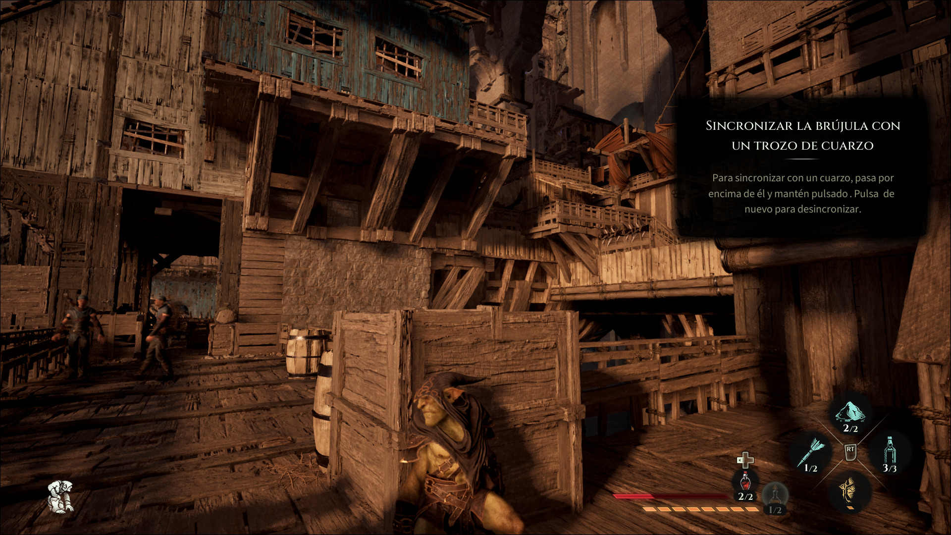 El doblaje está disponible únicamente en su idioma original, inglés, pero en lo que a texto refiere, el juego se encuentra localizado al español en su variante ibérica. Siempre intento analizar los títulos en español para aprender de los errores y aciertos de mis colegas localizadores y, en este caso, si bien el trabajo general es bueno, hubo algunos textos que realmente atentaron contra la experiencia de juego, como el tutorial para usar la brújula, que me resultó indescifrable y solo pude determinar su uso mediante la prueba y el error.