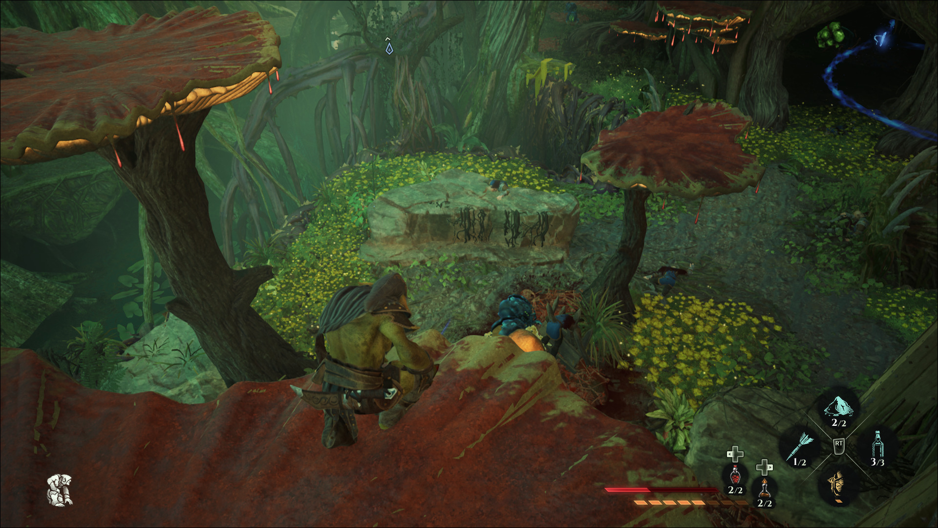 A medida que avanza la historia, el protagonista va ganando habilidades, ya sea por puntos de progreso o por la recuperación de planos o runas que funcionan como moneda de cambio para cosas como ampliar la capacidad del inventario o mejorar algunos poderes. El progreso habilita automáticamente algunas mecánicas, como la de colgarse con un gancho o ejecutar algunos poderes del Flujo.