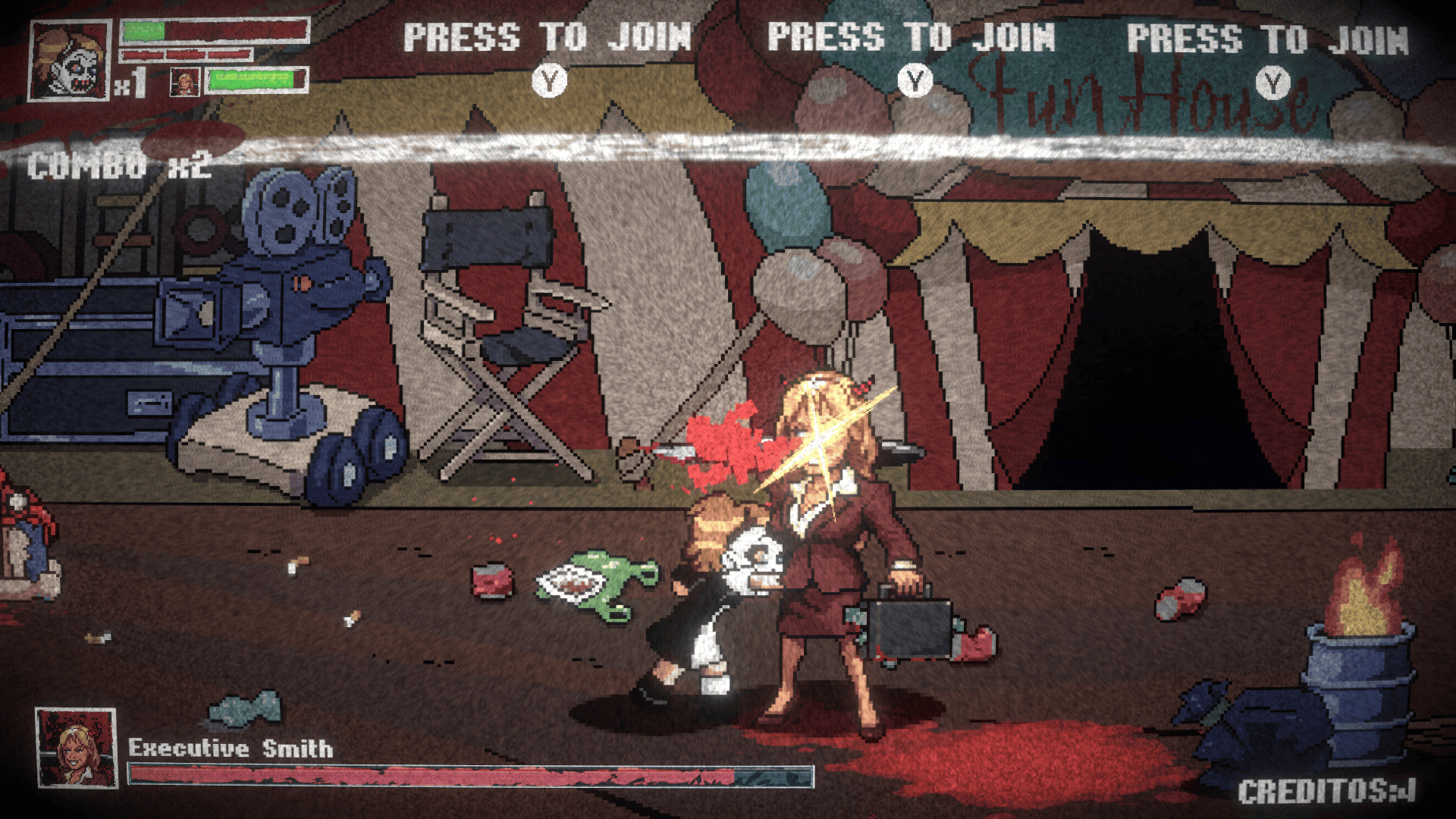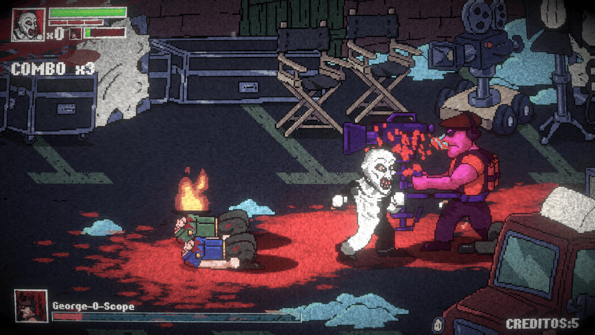 Lamentablemente, Terrifier: The ARTcade Game no llega a entrar dentro de esta categoría de grandes ejemplos. Las razones de esto son varias, una es el combate que resulta desde un principio muy lento, predecible y básico. Los controles responden a un ataque estándar que busca iniciar el combo y un botón de ataque fuerte. La combinación de estas dos variantes crean alguna variante junto con la posibilidad de correr y de saltar, pero hasta ahí llega la cosa. Otro ataque especial abre la puerta a la posibilidad de sacarse varios enemigos de encima (aunque no siempre se cumple esa función) y dar un golpe de remate a los enemigos derrotados es lo único que añade cierto componente original a la estructura, aunque la novedad se agota rápido, incluso probando con cada uno de los personajes seleccionables.