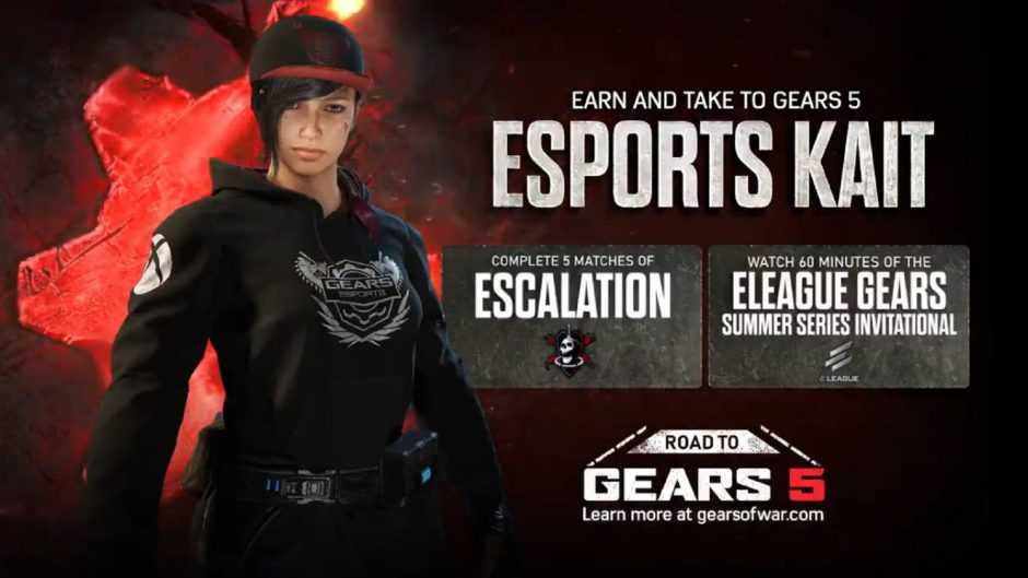 Para darnos aún más trabajo este fin de semana con la saga Gears, vamos a poder hacernos con el inscribible aspecto de Kait eSports, el cual se podrá conseguir aprovechando la retransmisión del ELEAGUE, pues tendremos que registrar 60 minutos de visualización, pero además tendremos que completar cinco partidas del modo Escalada del competitivo de Gears of War 4. Parece que este fin de semana habrá que estar pegados al PC o a la Xbox One para hacernos con este nuevo personaje que podremos transferir a Gears 5.