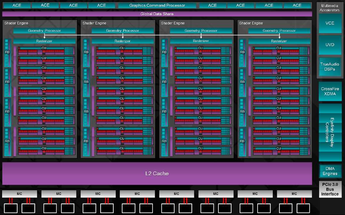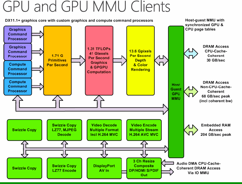 Diagrama de la arquitectura Hawaii (Familia Radeon R7 y R9) y Xbox One respectivamente: